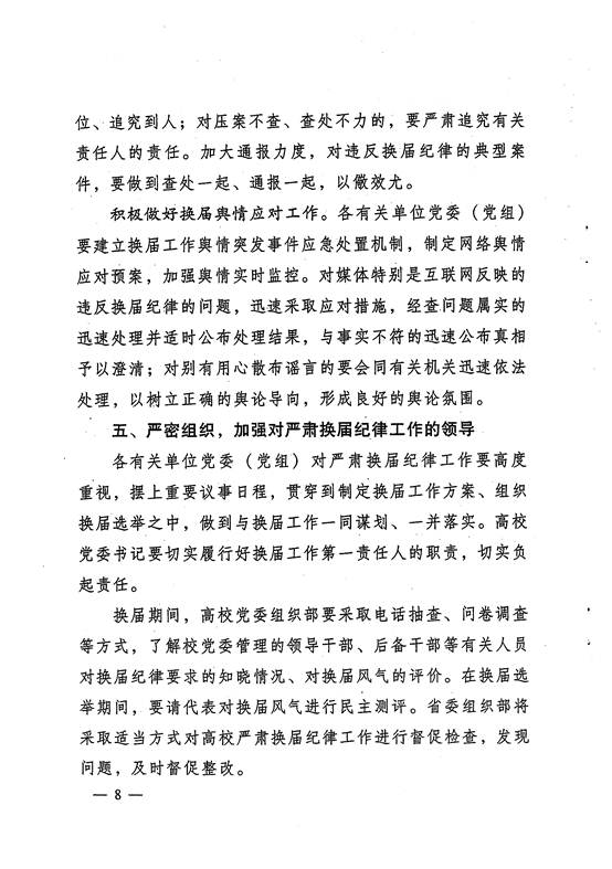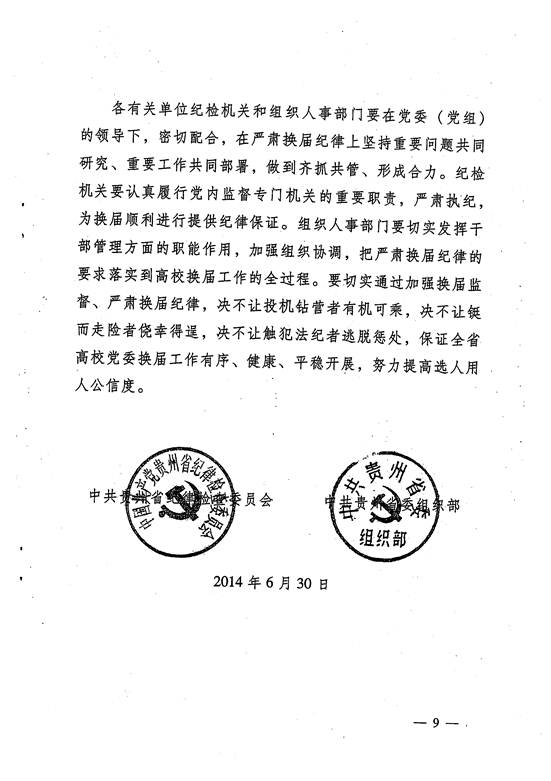 关于在贵州全省高校党委换届中严肃换届纪律保证换届风清气正的通知